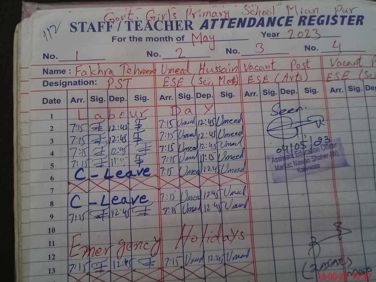 | Name: FA**** TE**** Designation: (School Headmaster's/Headmistress's) PST Phone/Cell Number: 03**** |