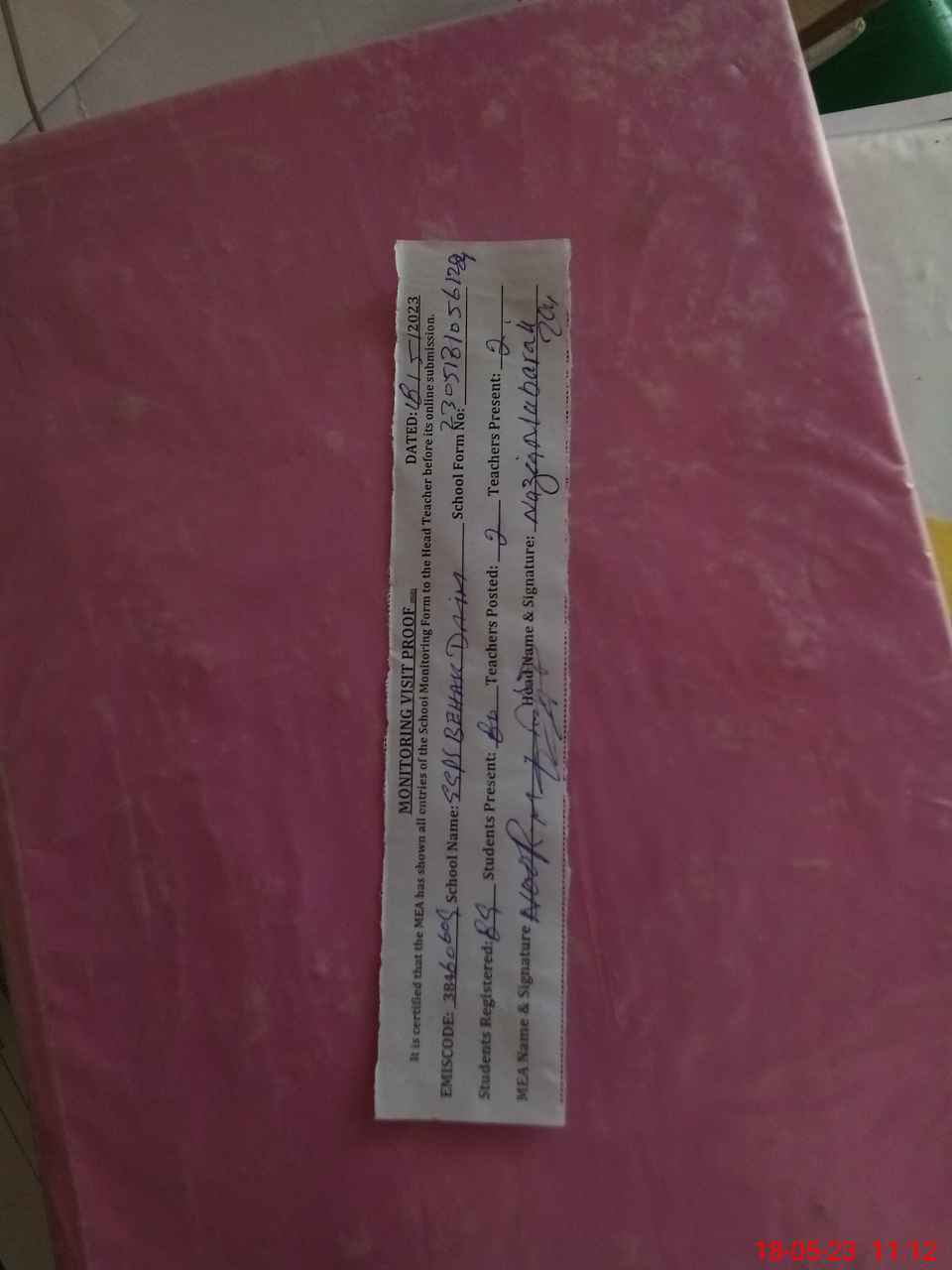 | Attendance Register | Head Teacher | MEA with School | Visit Proof |