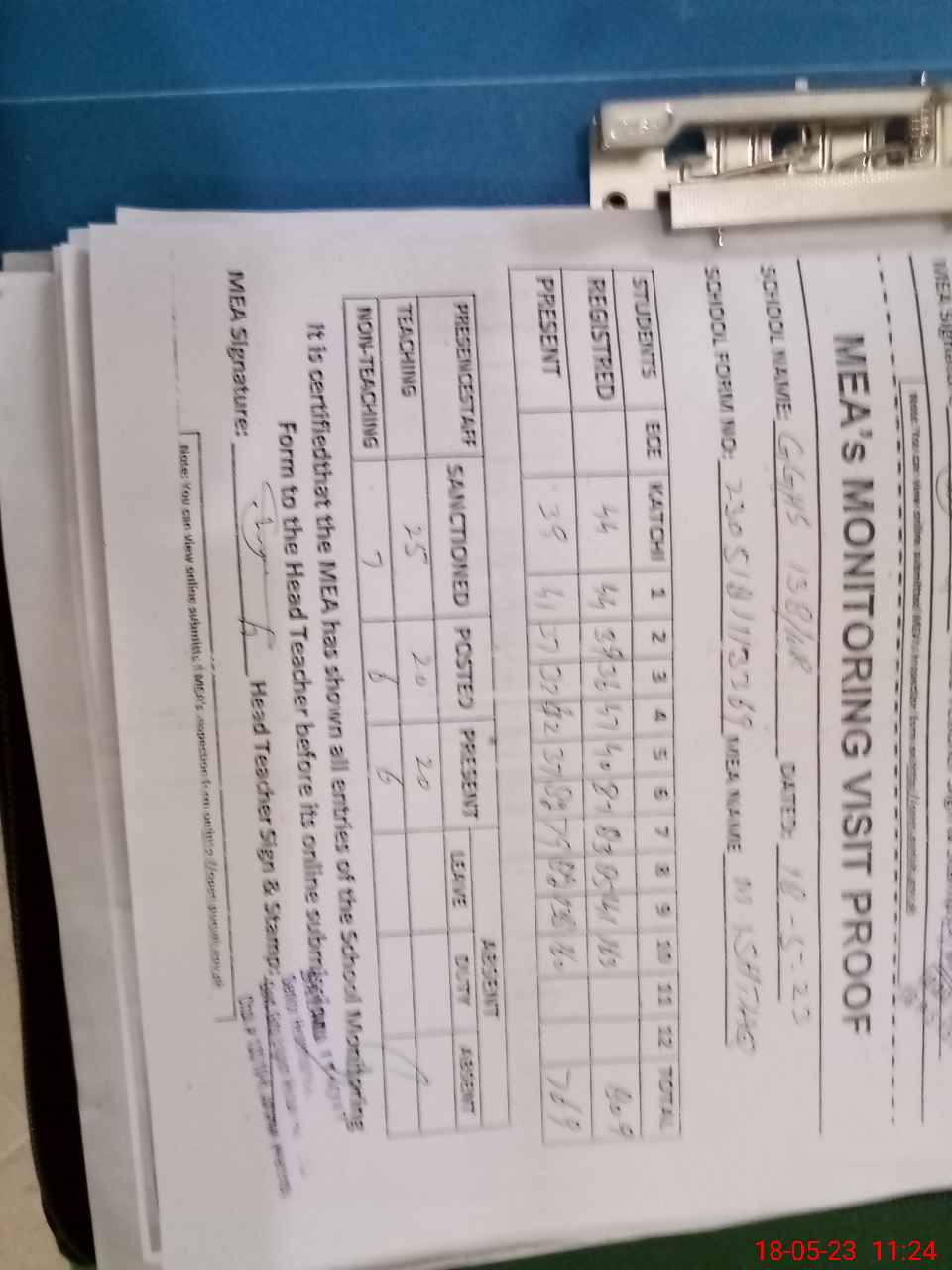 | Attendance Register | Head Teacher | MEA with School | Visit Proof |