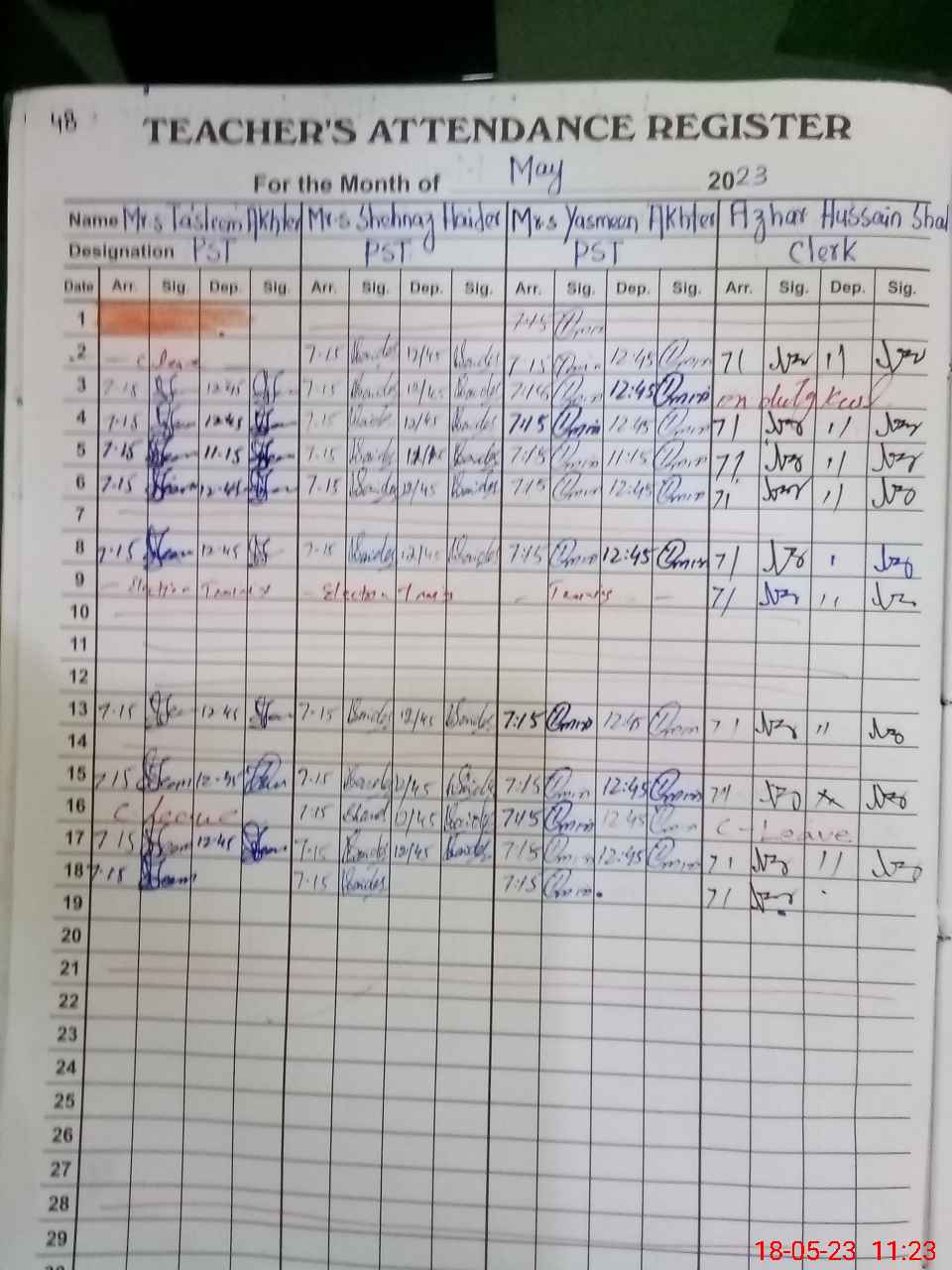 | Leave | Duty | Absent | Maternity | Medical | Ex- Pak |