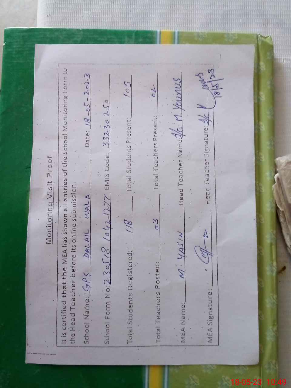 | EMIS Code: 33230250 | Name of School: GPS DALAIL WALA | |||