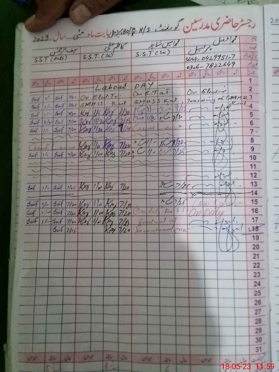 | 36**** | Mu**** Am**** Sh**** | SST | Regular | 0 | 0 | 0 | 0 | 0 | 0 | 0 | 0 | 0 | Exam Duty |