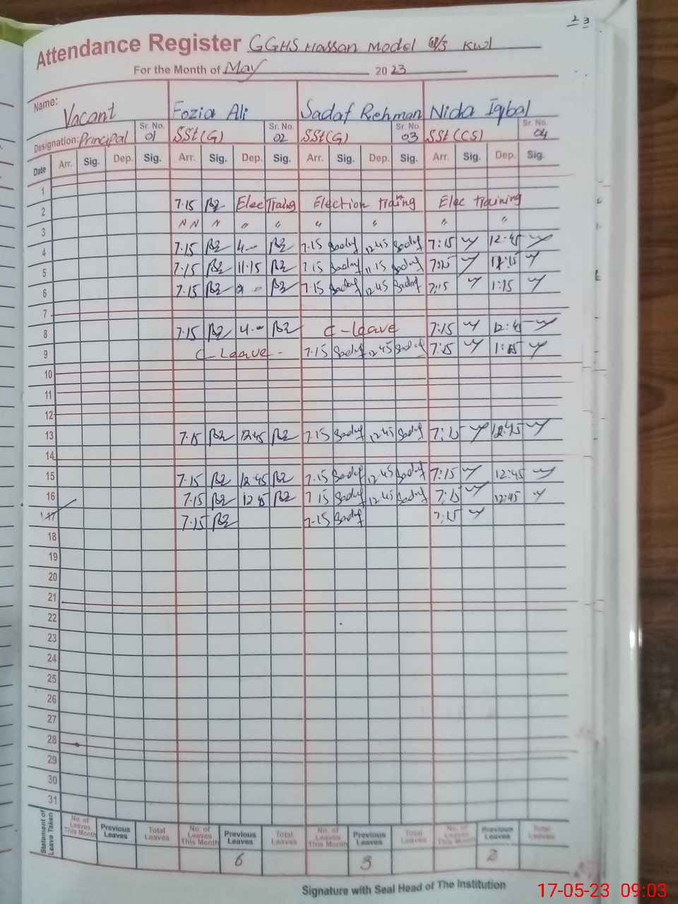 | 36**** | Sh**** Iq**** | Regular | 0 | 0 | 0 | 0 | 0 | 0 | 0 | 0 | 0 | Exam Duty | |