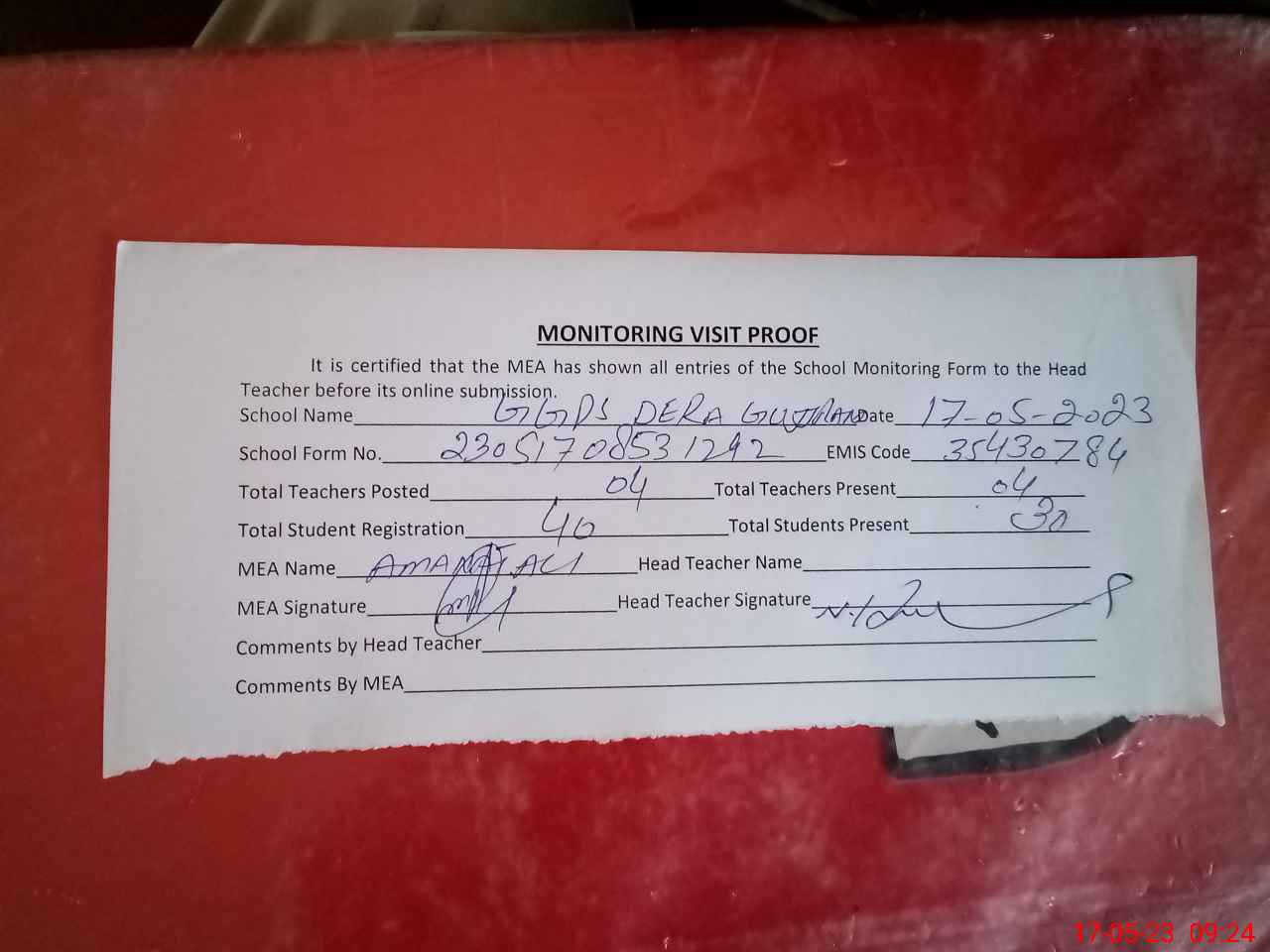 | EMIS Code: 35430784 | Name of School: GGPS DERA GUJRAN LALKAY | |||