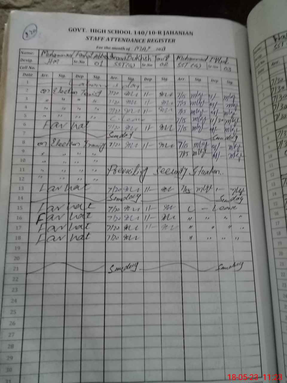 | Name: Mu**** Fa**** Ab**** Designation: (School Headmaster's/Headmistress's) HM Phone/Cell Number: 03**** |