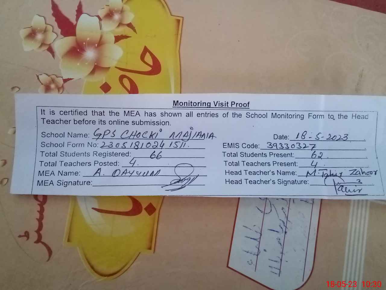 | EMIS Code: 39330327 | Name of School: GPS CHOKI MAJHIANA | |||