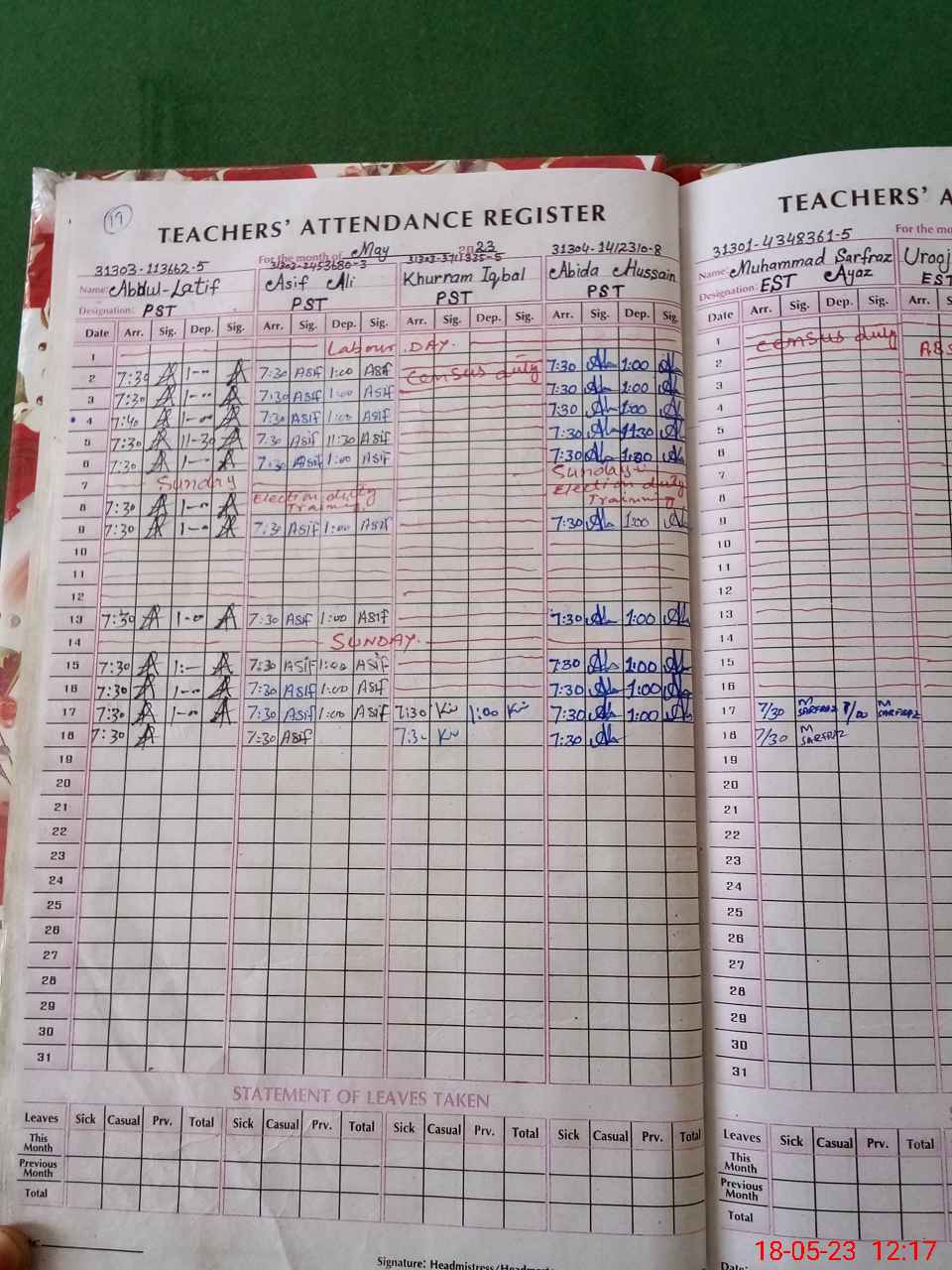 | 31**** | Mu**** Da**** | C IV | Regular | 0 | 0 | 31 | 0 | 0 | 0 | 0 | 0 | 0 | Absent (Un-Authorized) |