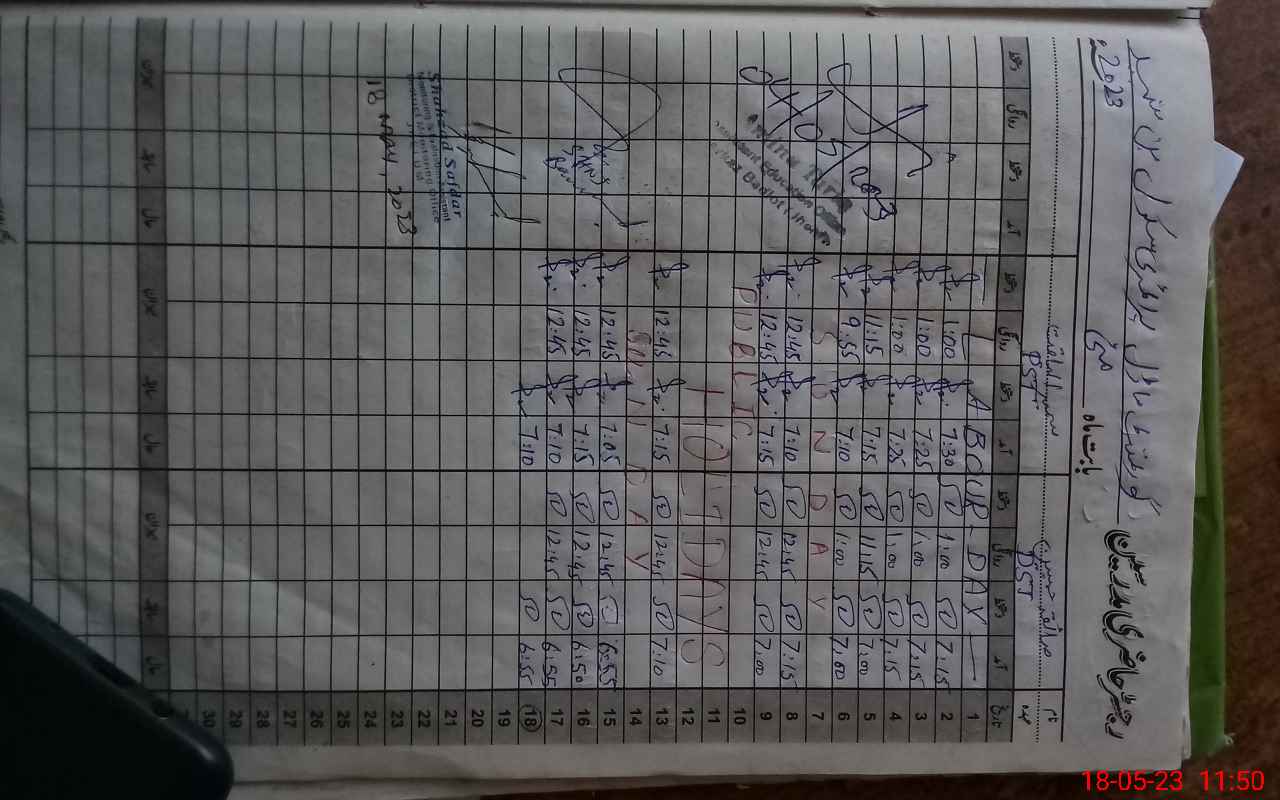 | CNIC | Full Name | Designation | R/C | Absence During Last Calender Month |