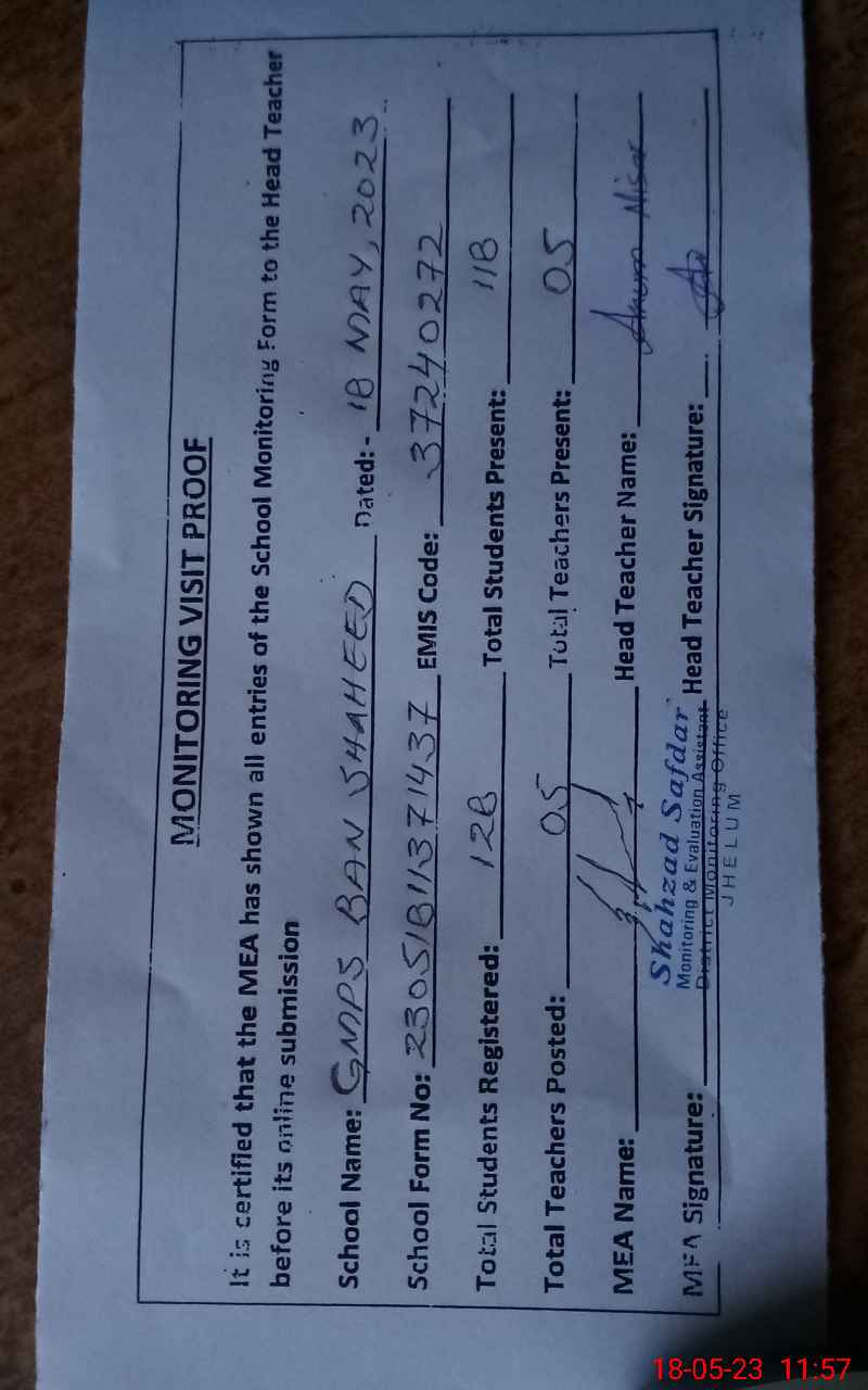 | EMIS Code: 37240272 | Name of School: GMPS BAN SHAHEED | |||