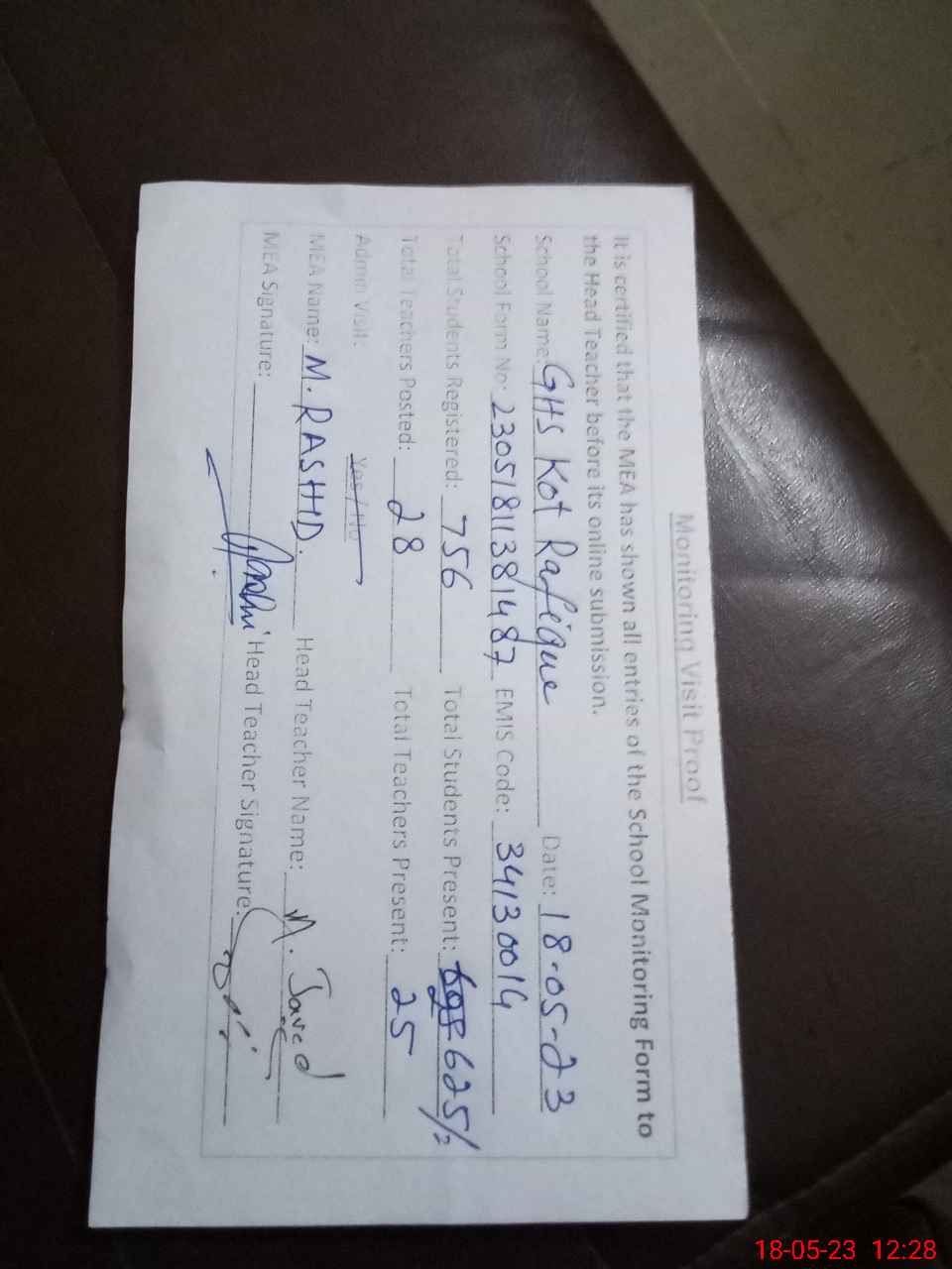 | EMIS Code: 34130014 | Name of School: GHS KOT RAFIQUE | |||