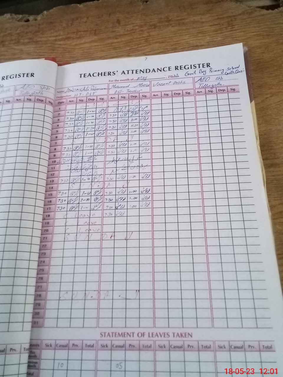 | Name: Mu**** Mu**** Designation: (School Headmaster's/Headmistress's) PST Phone/Cell Number: 03**** |