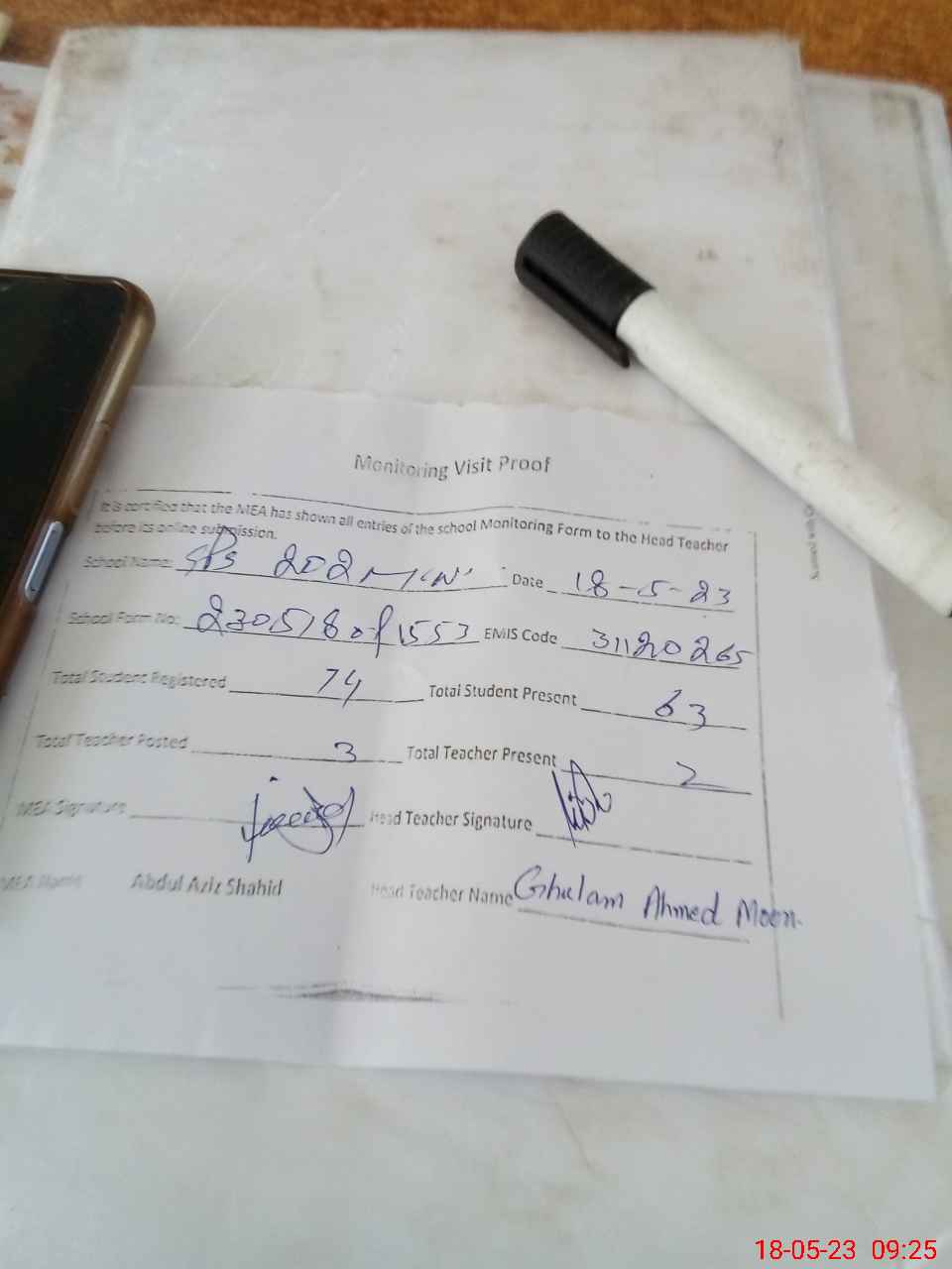 | Attendance Register | Head Teacher | MEA with School | Visit Proof |