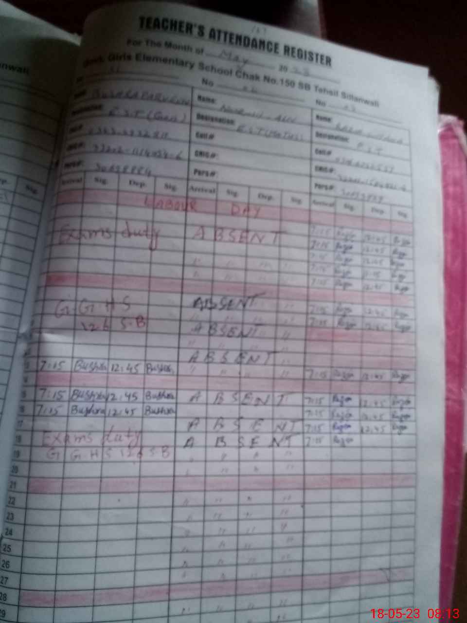 | Name: Bu**** Pe**** Designation: (School Headmaster's/Headmistress's) Eat G Phone/Cell Number: 03**** |
