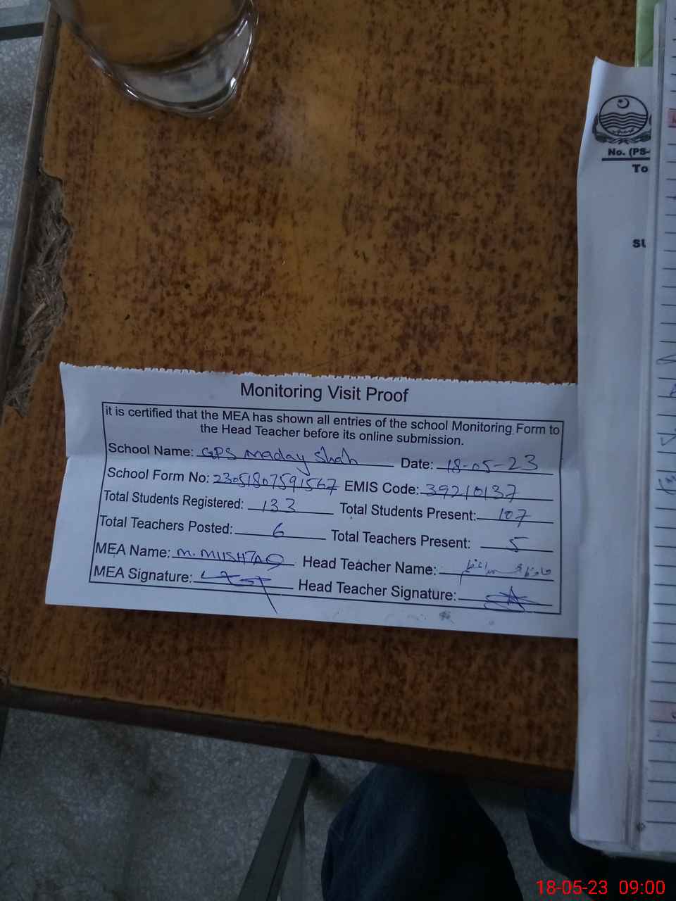 | EMIS Code: 39210137 | Name of School: GPS MADAY SHAH | |||