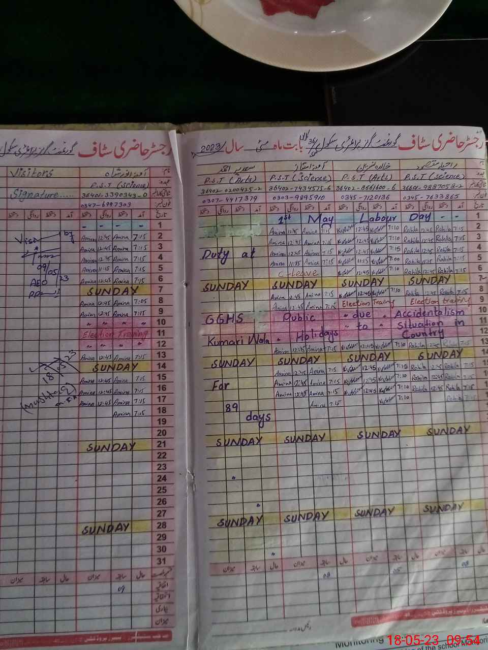 | Name: RA**** MA**** Designation: (School Headmaster's/Headmistress's) PST Phone/Cell Number: 03**** |