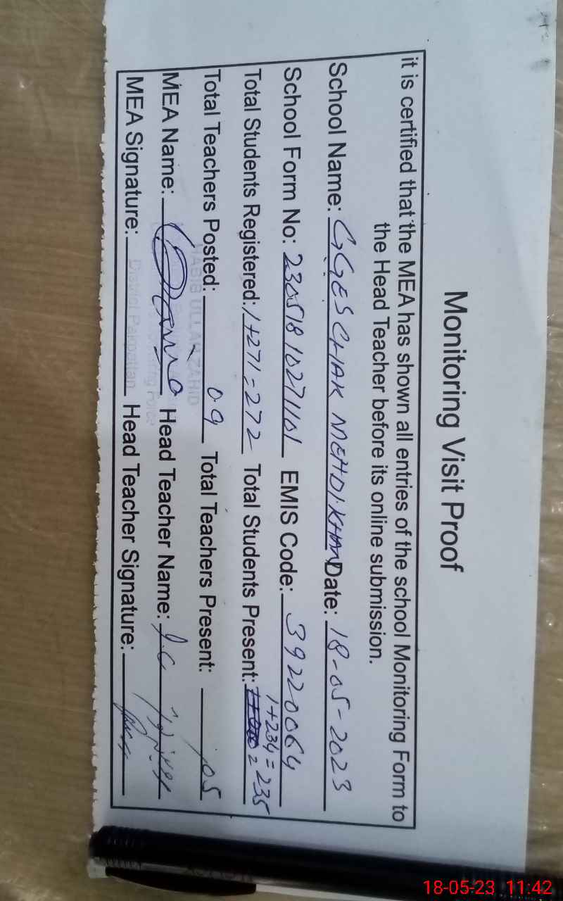 | EMIS Code: 39220064 | Name of School: GGES CHAK MEHDI KHAN | |||