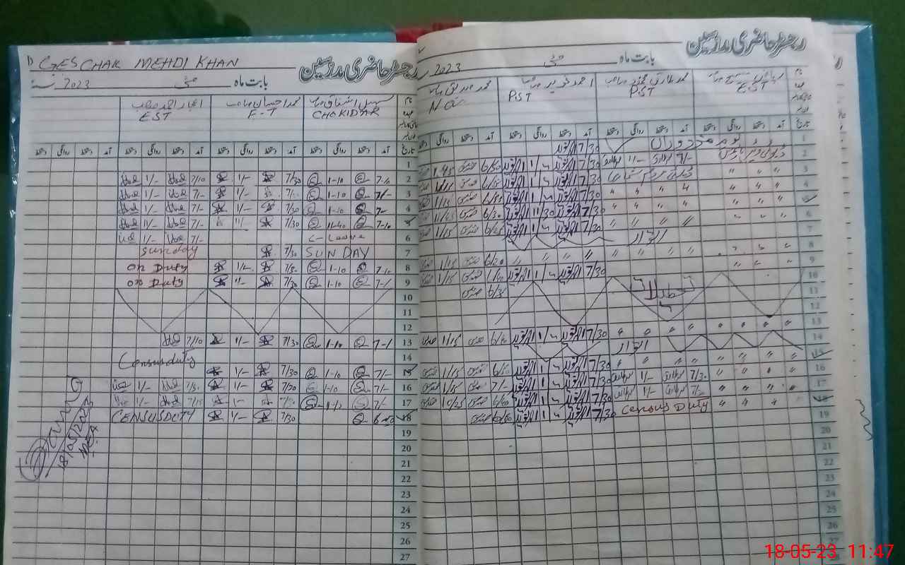 | CNIC | Full Name | Designation | R/C | Absence During Last Calender Month |