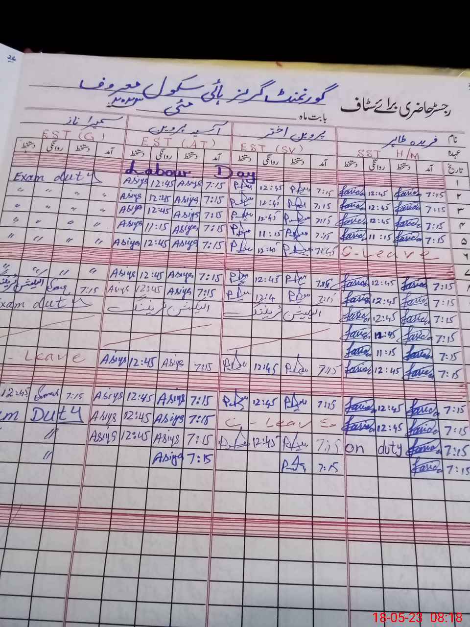 | Leave | Duty | Absent | Maternity | Medical | Ex- Pak |