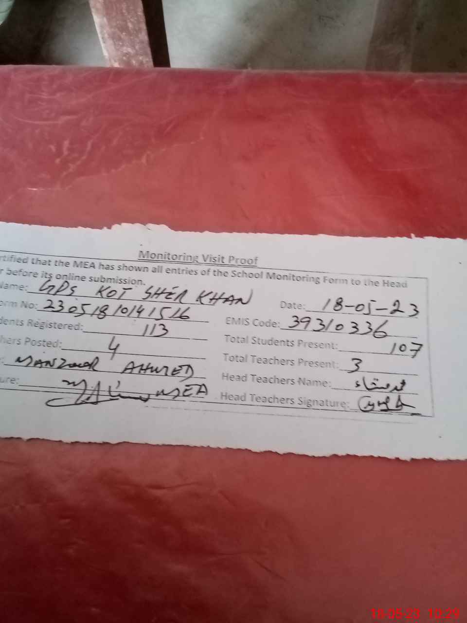 | EMIS Code: 39310336 | Name of School: GPS KOT SHER KHAN | |||