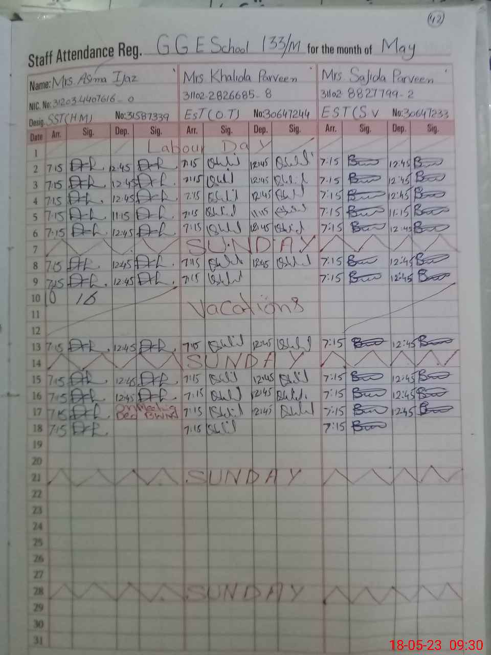 | CNIC | Full Name | Designation | R/C | Absence During Last Calender Month |