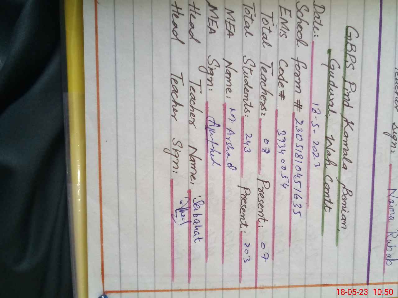 | Name: Mu**** An**** Designation: (School Headmaster's/Headmistress's) Pst Phone/Cell Number: 03**** |