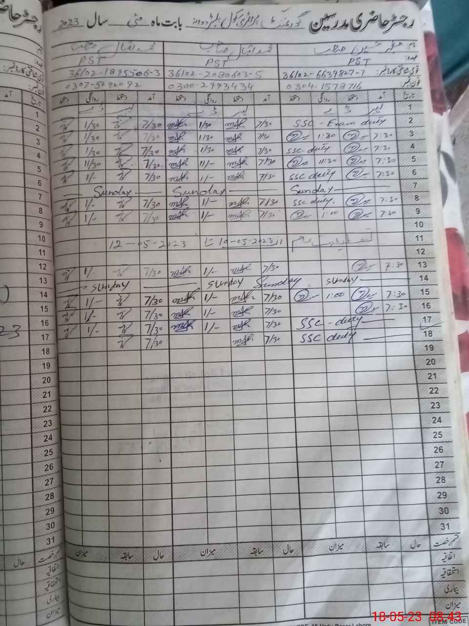 | 36**** | Ma**** Hu**** | ESE | Contract | 0 | 0 | 0 | 0 | 0 | 0 | 0 | 0 | 0 | Exam Duty |