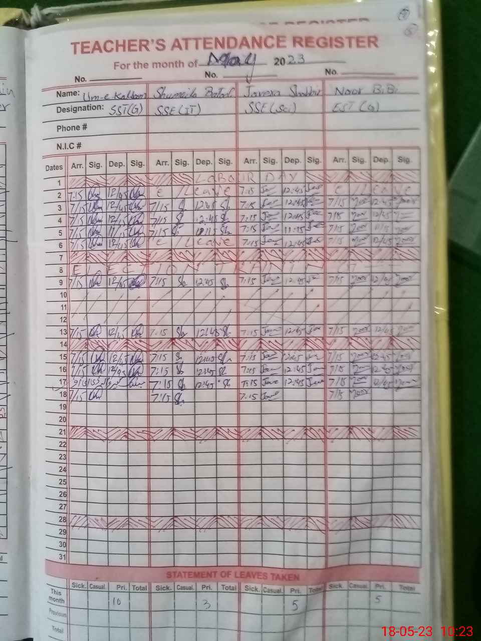 | 36**** | Sa**** Ak**** | PST | Regular | 0 | 0 | 0 | 0 | 0 | 0 | 0 | 0 | 0 | Exam Duty |
