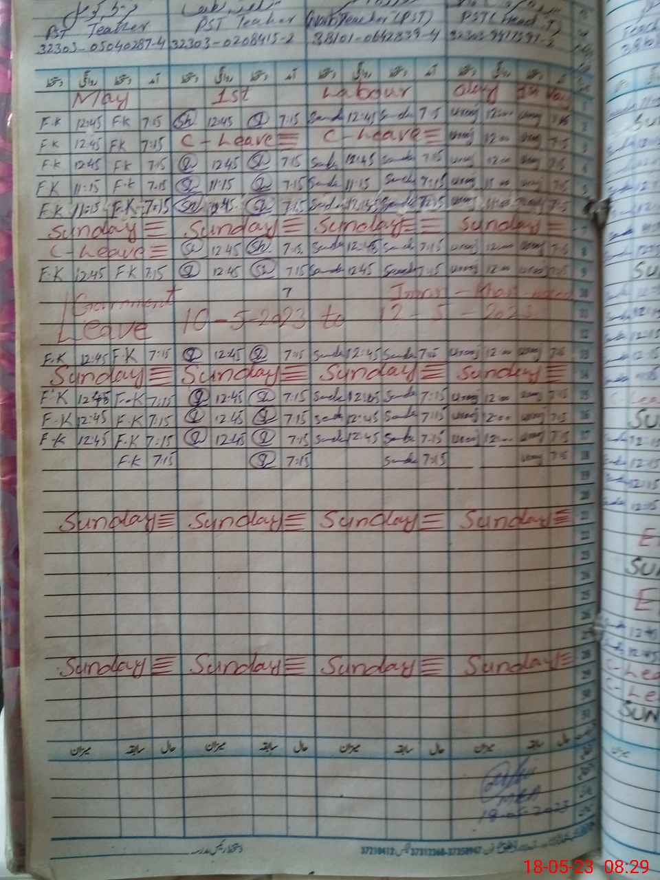 | CNIC | Full Name | Designation | R/C | Absence During Last Calender Month |