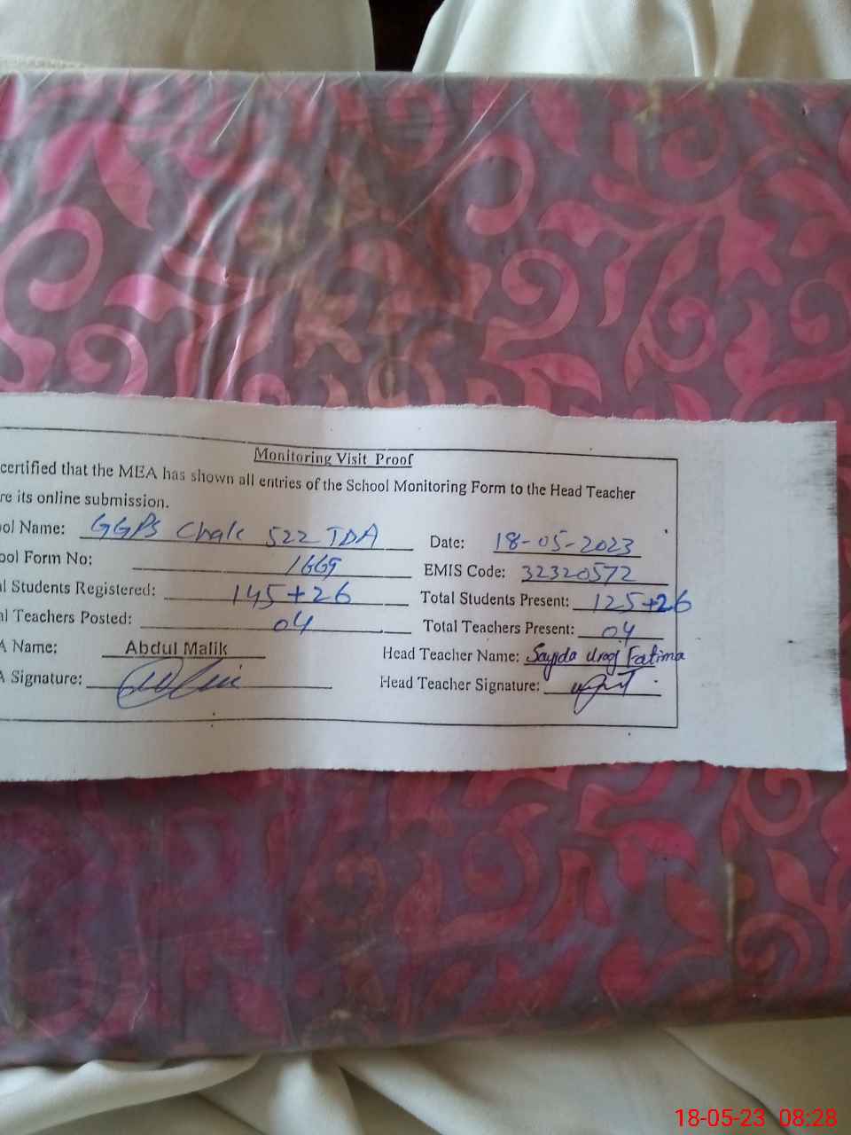 | Attendance Register | Head Teacher | MEA with School | Visit Proof |
