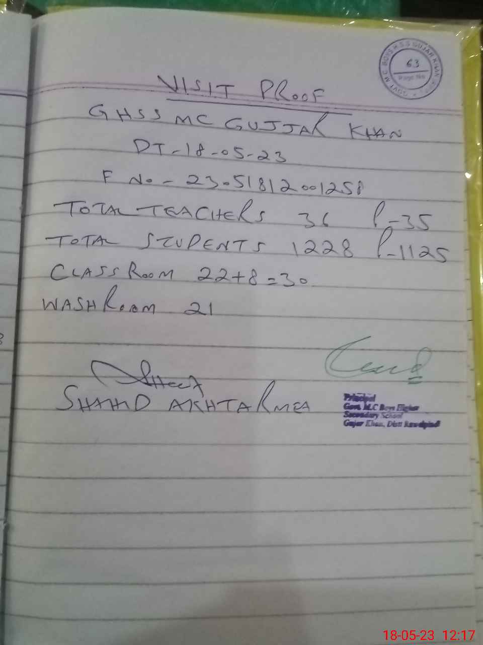 | EMIS Code: 37360004 | Name of School: GHSS MC GUJAR KHAN | |||