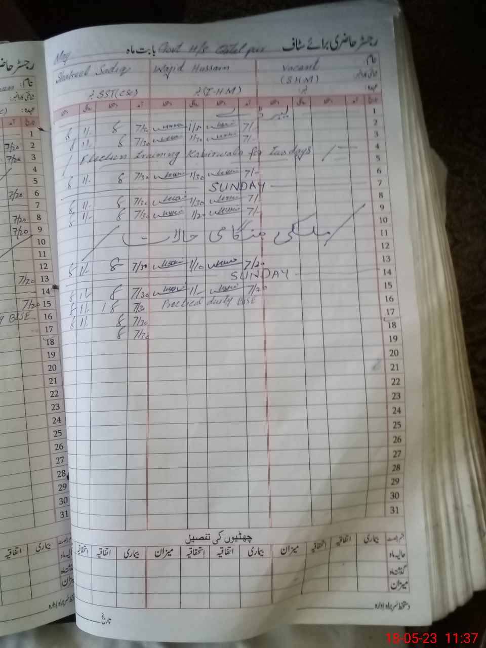 | 36**** | Ab**** Ma**** Kh**** | SST | Regular | 0 | 0 | 0 | 0 | 0 | 0 | 0 | 0 | 0 | Exam Duty |