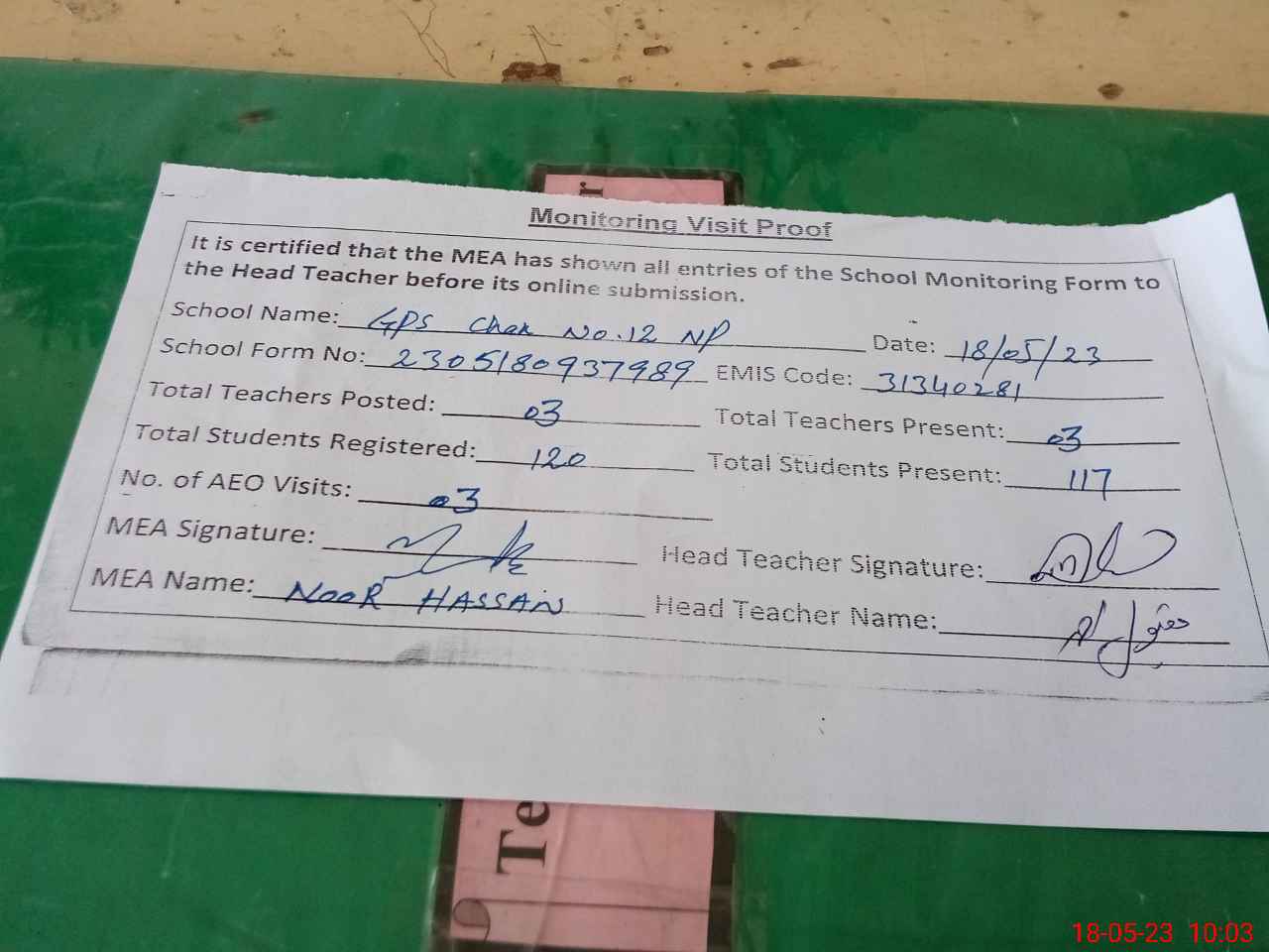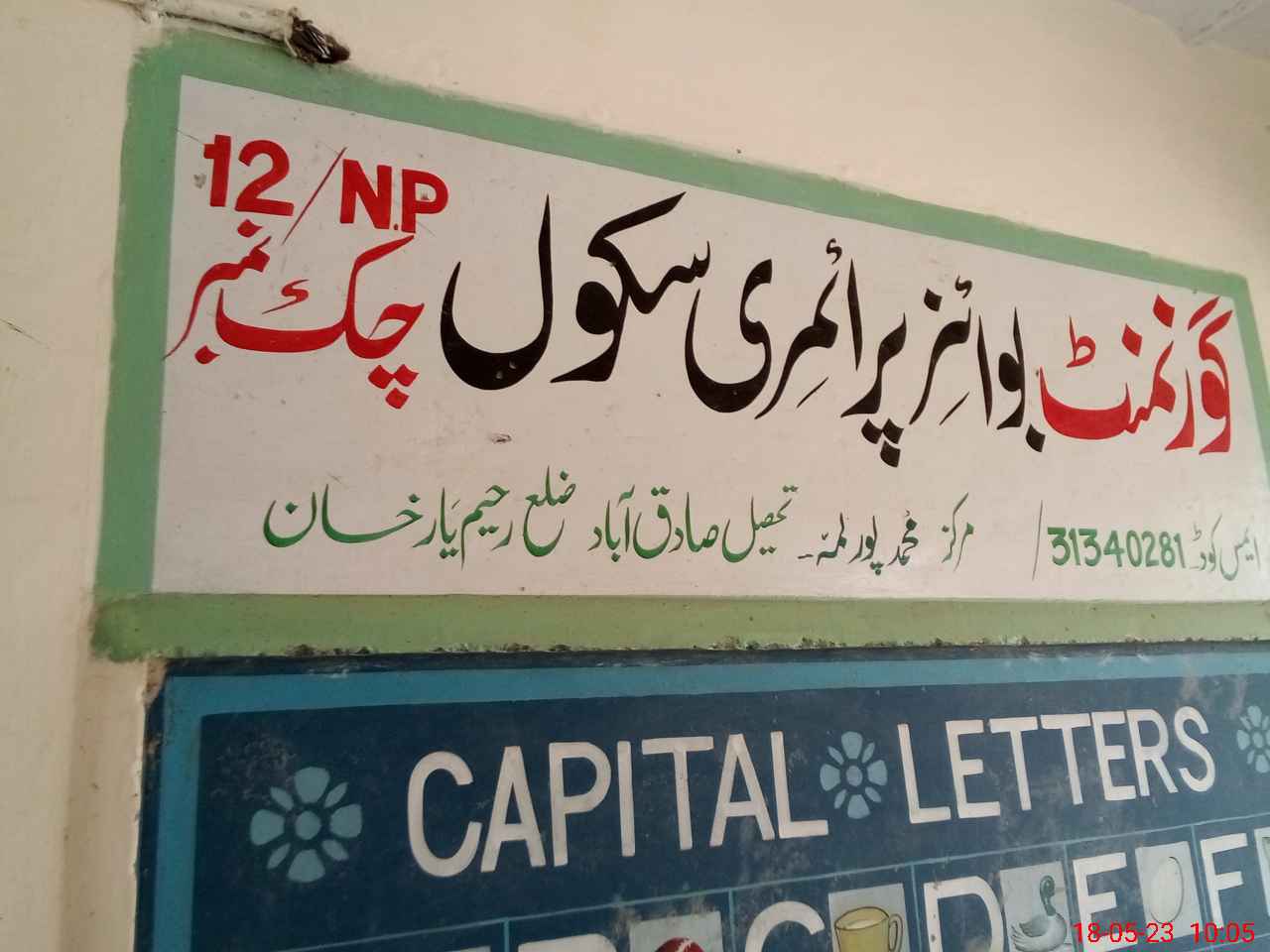 | EMIS Code: 31340281 | Name of School: GPS CHAK NO 12 NP | |||