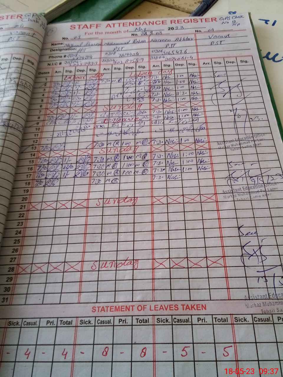 | Name: MA**** AH**** Designation: (School Headmaster's/Headmistress's) PST/PTC/JV Phone/Cell Number: 03**** |