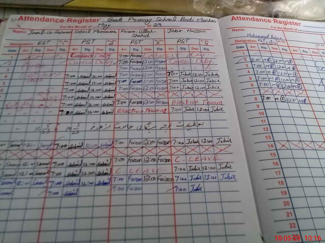 | CNIC | Full Name | Designation | R/C | Absence During Last Calender Month |