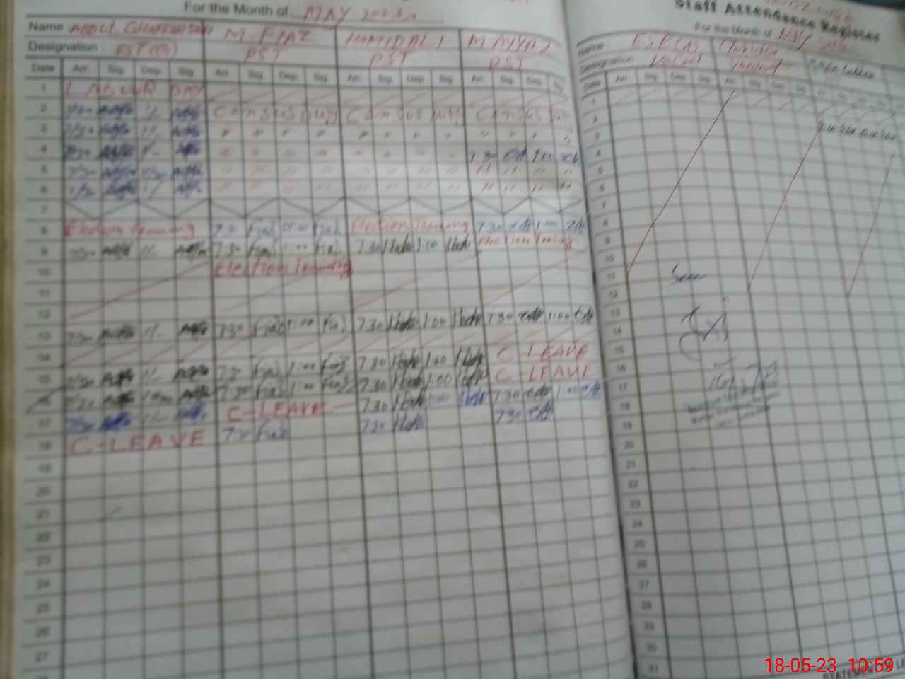 | CNIC | Full Name | Designation | R/C | Absence During Last Calender Month |