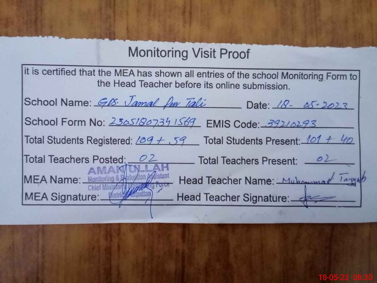 | EMIS Code: 39210293 | Name of School: GPS JAMAL PUR TALI | |||