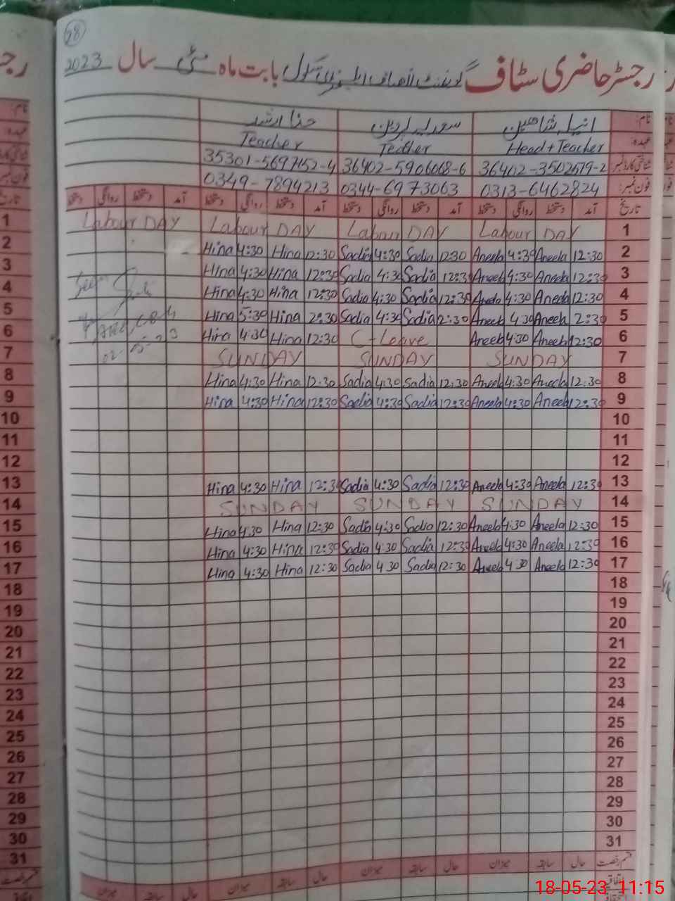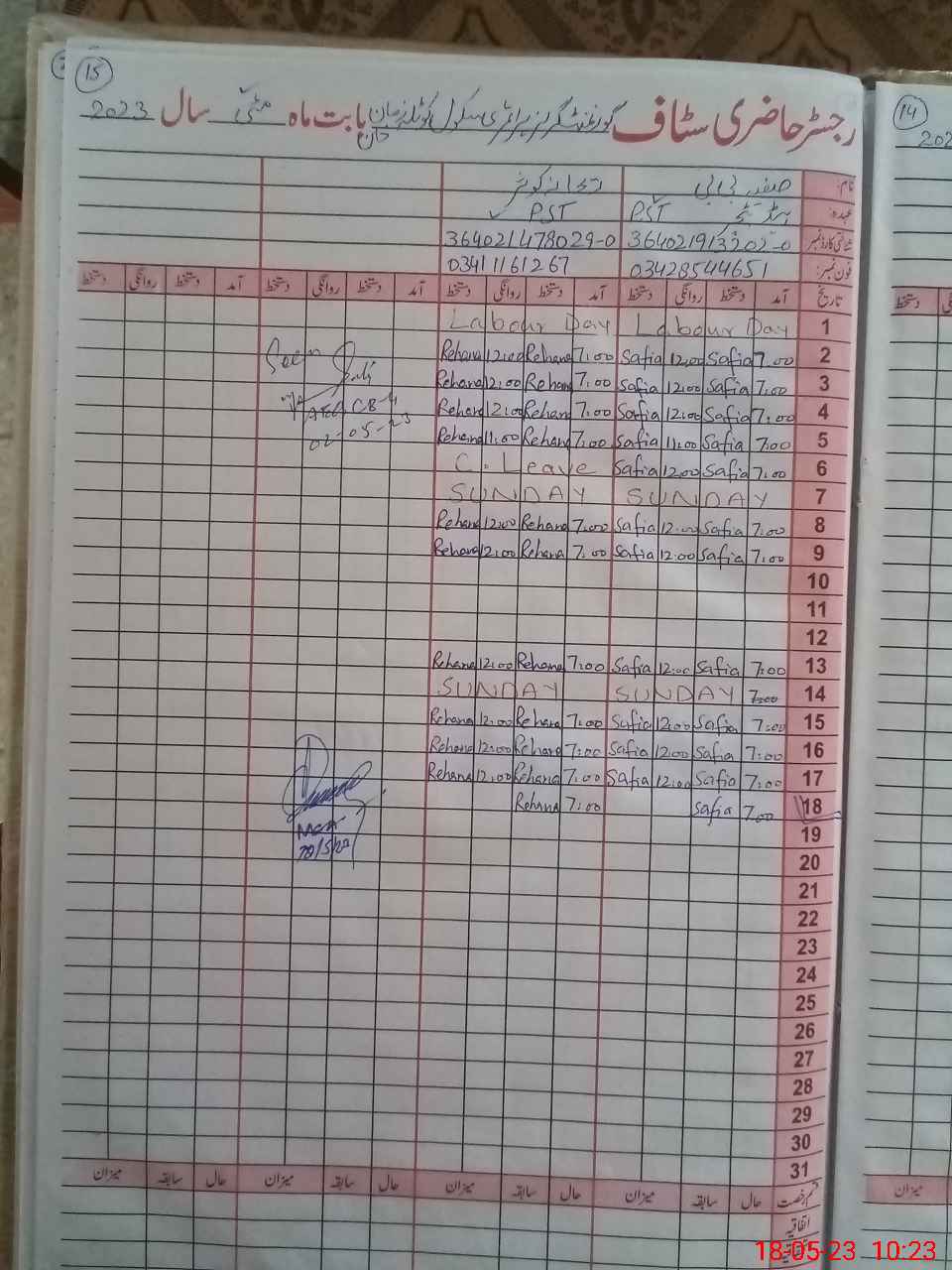 | Name: Sa**** Bi**** Designation: (School Headmaster's/Headmistress's) PST Phone/Cell Number: 03**** |