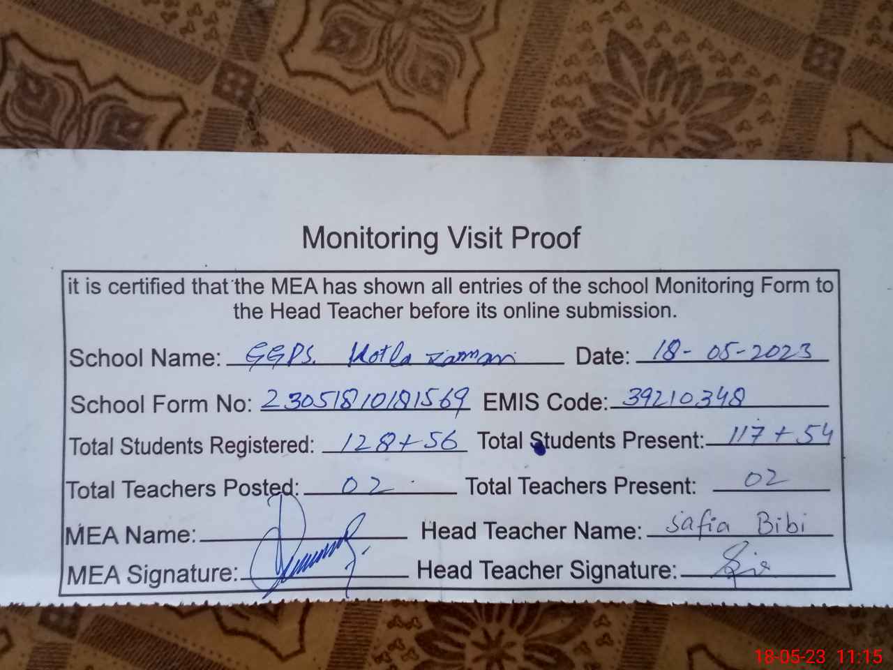 | EMIS Code: 39210348 | Name of School: GGPS KOTLA ZAMAN KHAN | |||