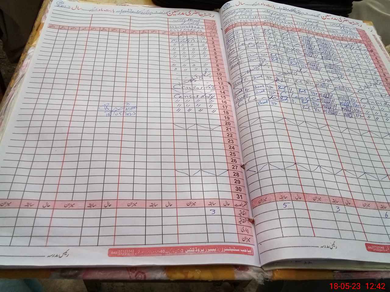 | CNIC | Full Name | Designation | R/C | Absence During Last Calender Month |