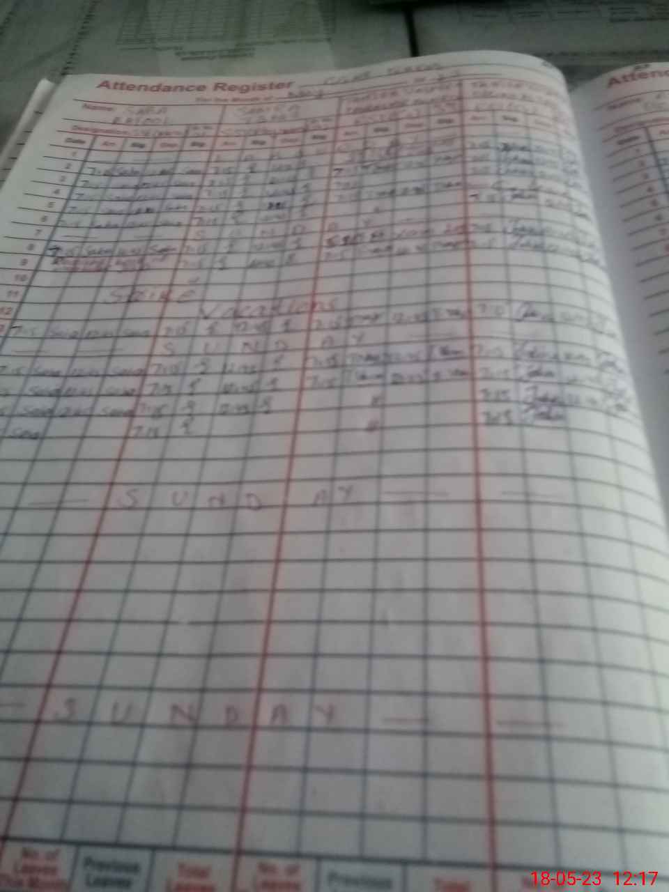 | 38**** | Ta**** Ya**** | Regular | 0 | 0 | 0 | 0 | 0 | 0 | 0 | 0 | 0 | Exam Duty | |