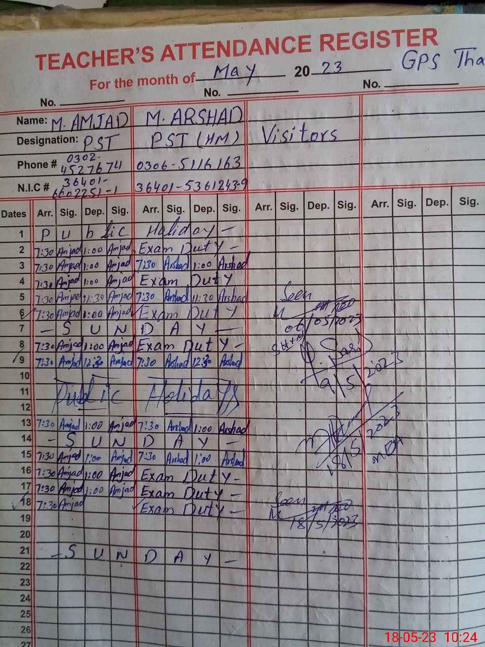 | 36**** | Mu**** Ar**** | PST | Regular | 0 | 0 | 0 | 0 | 0 | 0 | 0 | 0 | 0 | Exam Duty |