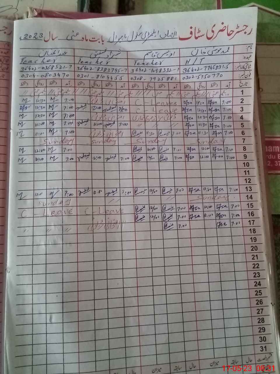 | Name: Mu**** Mo**** Kh**** Designation: (School Headmaster's/Headmistress's) PST Phone/Cell Number: 03**** |