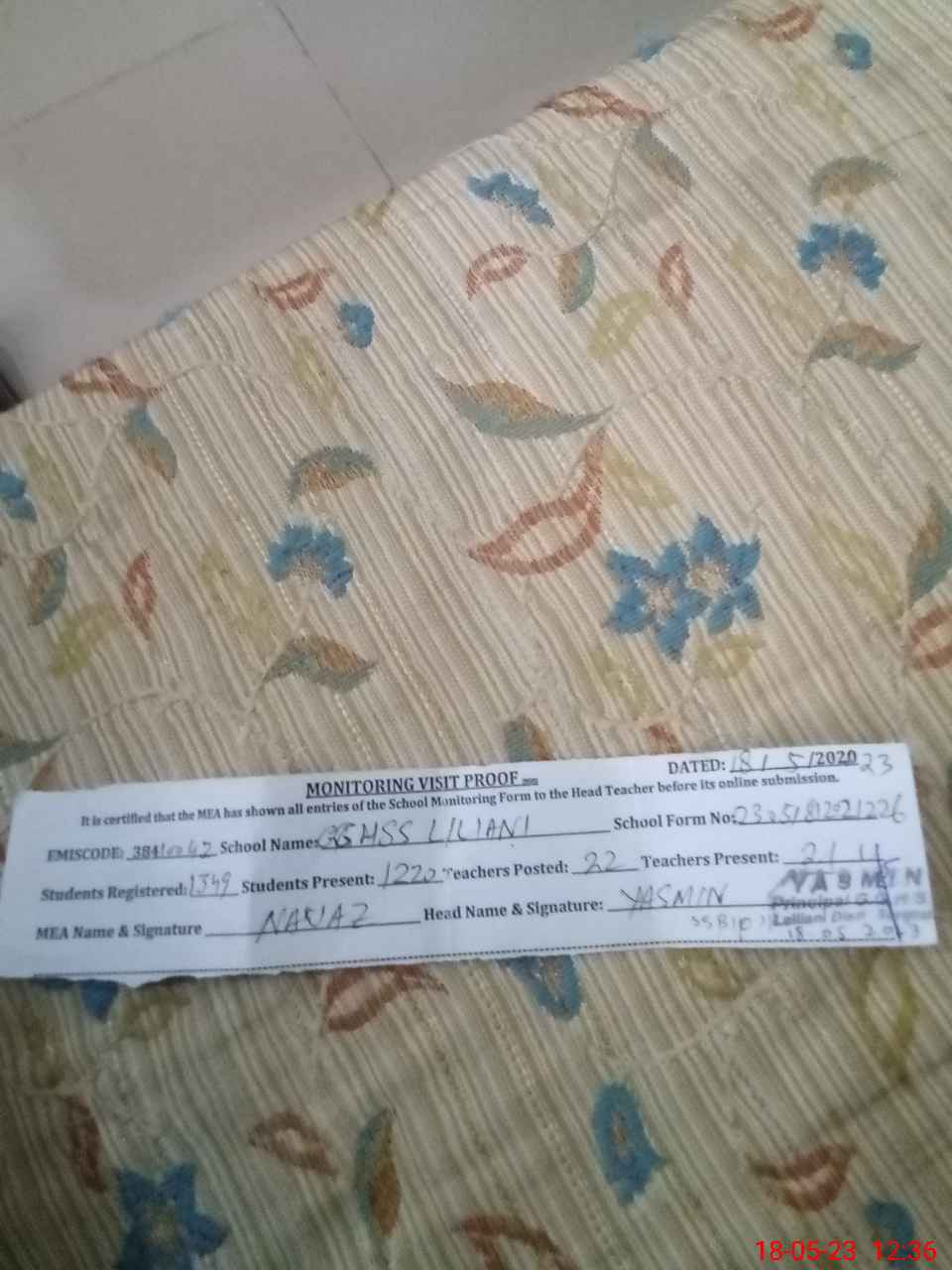 | Attendance Register | Head Teacher | MEA with School | Visit Proof |
