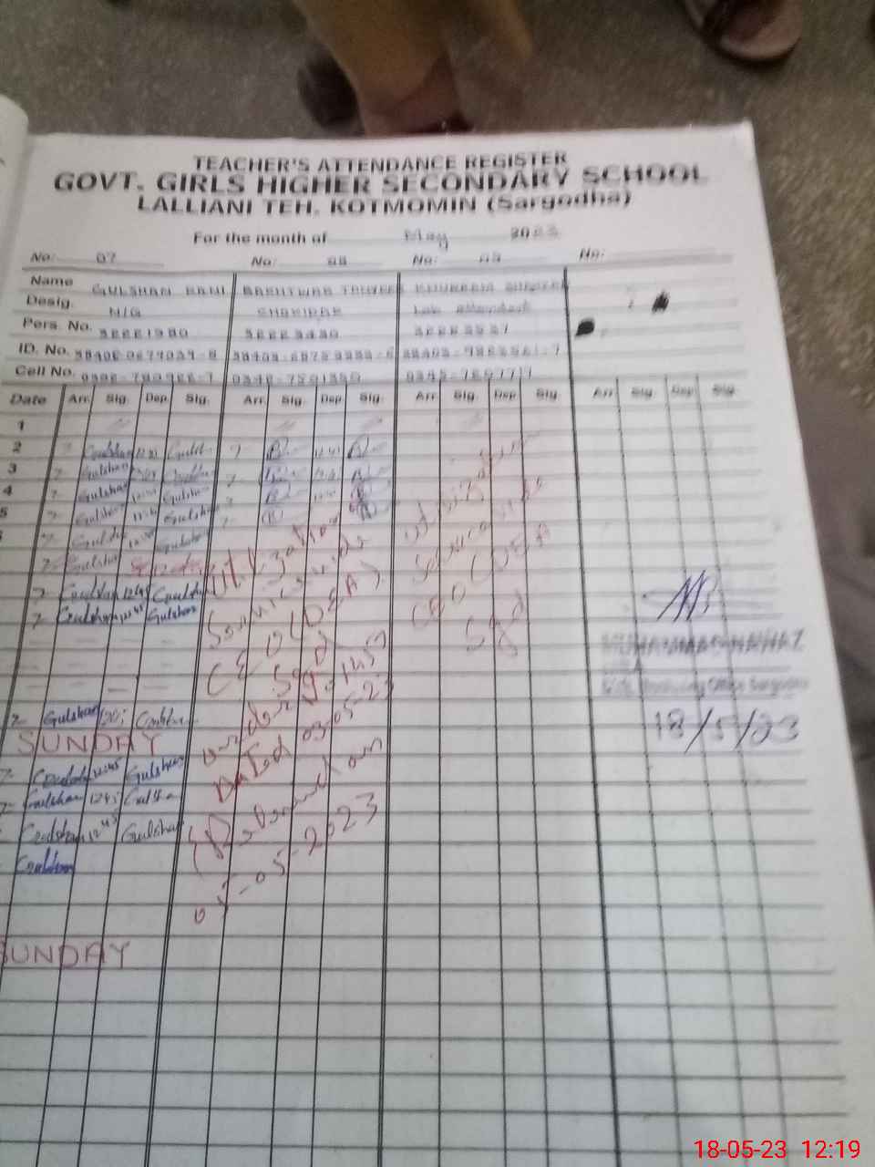 | Name: YA**** SH**** Designation: (School Headmaster's/Headmistress's) S S (BIO) Phone/Cell Number: 03**** |