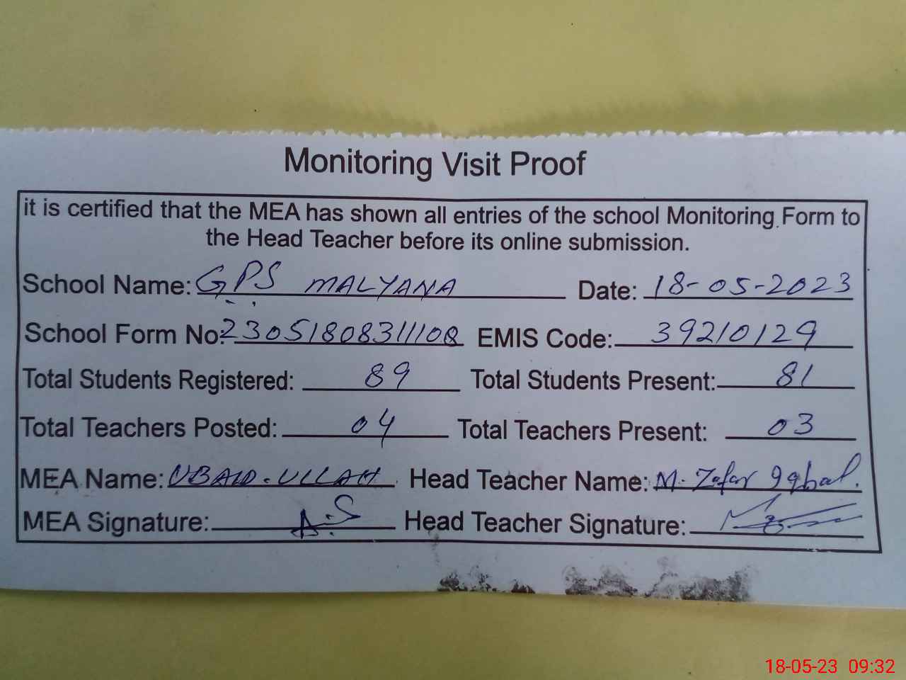 | EMIS Code: 39210129 | Name of School: GPS MALYANA P.O KALYANA | |||