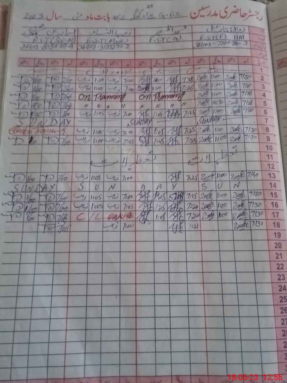 | Name: Mu**** Az**** Designation: (School Headmaster's/Headmistress's) EST Phone/Cell Number: 03**** |