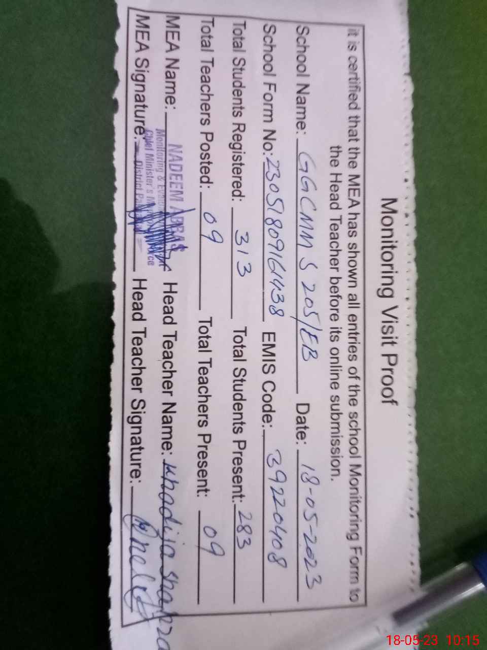 | EMIS Code: 39220408 | Name of School: GGCMMS 205 EB | |||