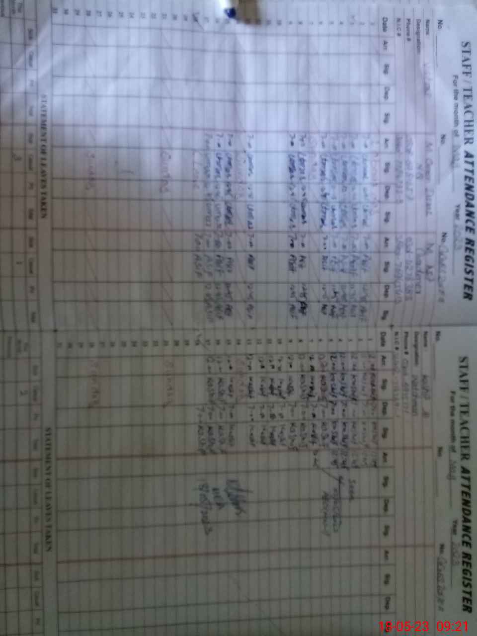| 36**** | Ay**** Ra**** | Regular | 2 | 20 | 0 | 0 | 0 | 0 | 0 | 0 | 2 | Exam Duty | |