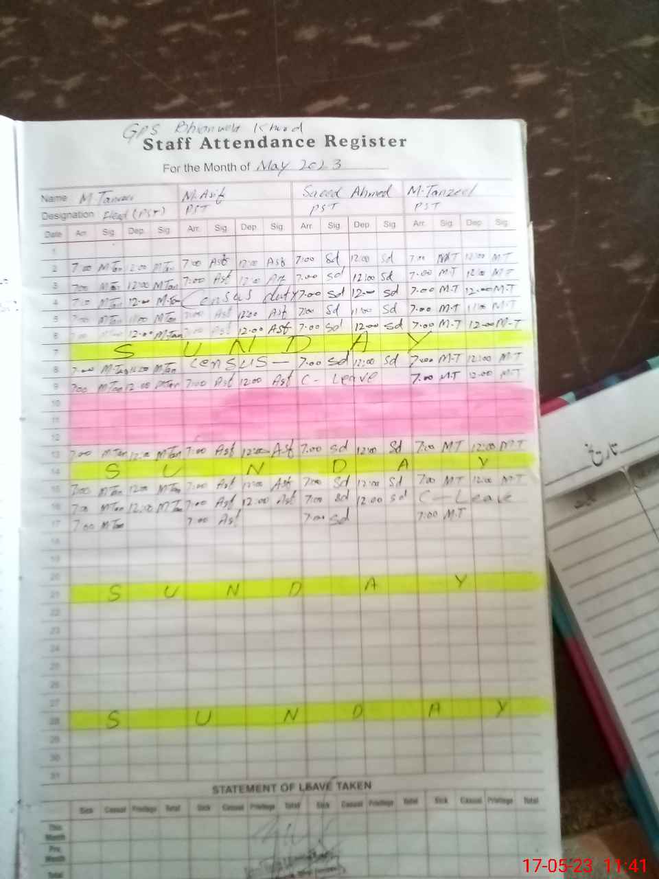 | Name: M.TA**** Designation: (School Headmaster's/Headmistress's) PST Phone/Cell Number: 03**** |