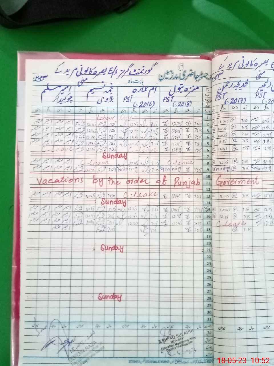 | Name: NO**** Sh**** Designation: (School Headmaster's/Headmistress's) SST Phone/Cell Number: 03**** |
